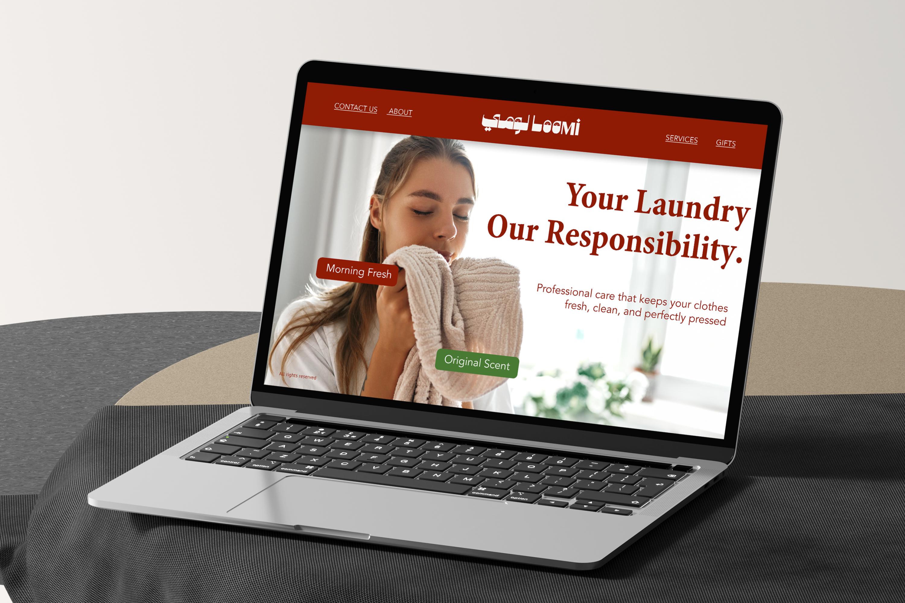 هوية بصرية مستوحاة من التراث: ابتكرنا شعارًا يعتمد على خط “Neo-Kufi” الهندسي الحديث، ليعكس التوازن بين التقاليد والحداثة. وتم دمج رمز “شريحة اللومي” (الليمون المجفف) بذكاء داخل الحروف لتعزيز الهوية البصرية والاسم التجاري.