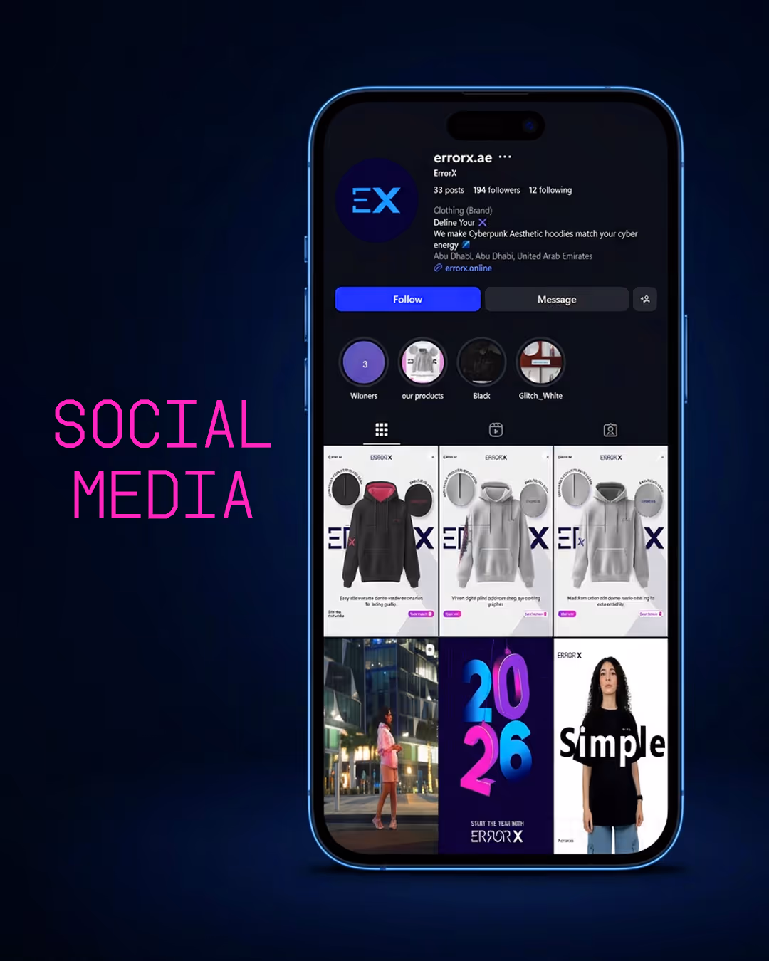 We managed ErrorX’s social media presence by creating a consistent content strategy that aligned with their cyberpunk/anime streetwear identity. Our team also handled a lifestyle photoshoot and video shoot for their product line, along with running basic ad campaigns to boost brand visibility and website traffic.